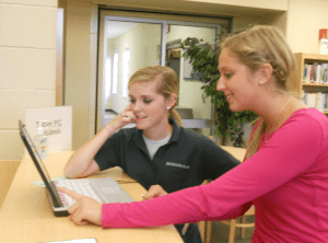 Ritter’s job involves working “mainly with student tablets, but when teachers have a problem we help them too.” In addition to troubleshooting, Ritter helps students and teachers use the technology effectively. She implemented Tech Tips for Tuesdays, with phrases like “Before you close your tablet: Make sure you exit out of OneNote, so you don’t lose everything you wrote” and she creates tip-sheets on topics like using OneNote and conserving battery life. Ritter also sends newsletters to teachers to help them learn about different technologies and web tools they can use in the classroom.