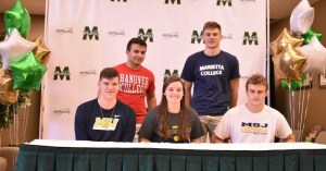 On Feb. 6, senior athletes Nate Chambers, Bryce Kellerman, Michael Schaeper, Maggie Schoolfield, and Chris Walter signed National Letters of Intent to play their respective sports at the college level starting with the 2019-2020 school year. Three of the five will be attending Mt. St. Joseph University: Chambers, soccer; Schoolfield, basketball; and Walter, football. Kellerman will be continuing his basketball career at Marietta College, and Schaeper will be playing lacrosse at Hanover College. McNick will hold its final NCAA Signing Day of the year April 17.