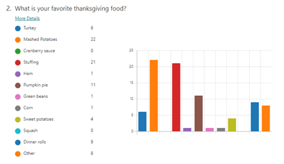 This is the final result of the Milestone poll. Foods participants listed in the “other category” included homemade noodles and chicken, sweet potato soufflé (without marshmallows), gravy, green bean casserole, mac n cheese, cornbread, pecan pie, and strawberry rhubarb pie.