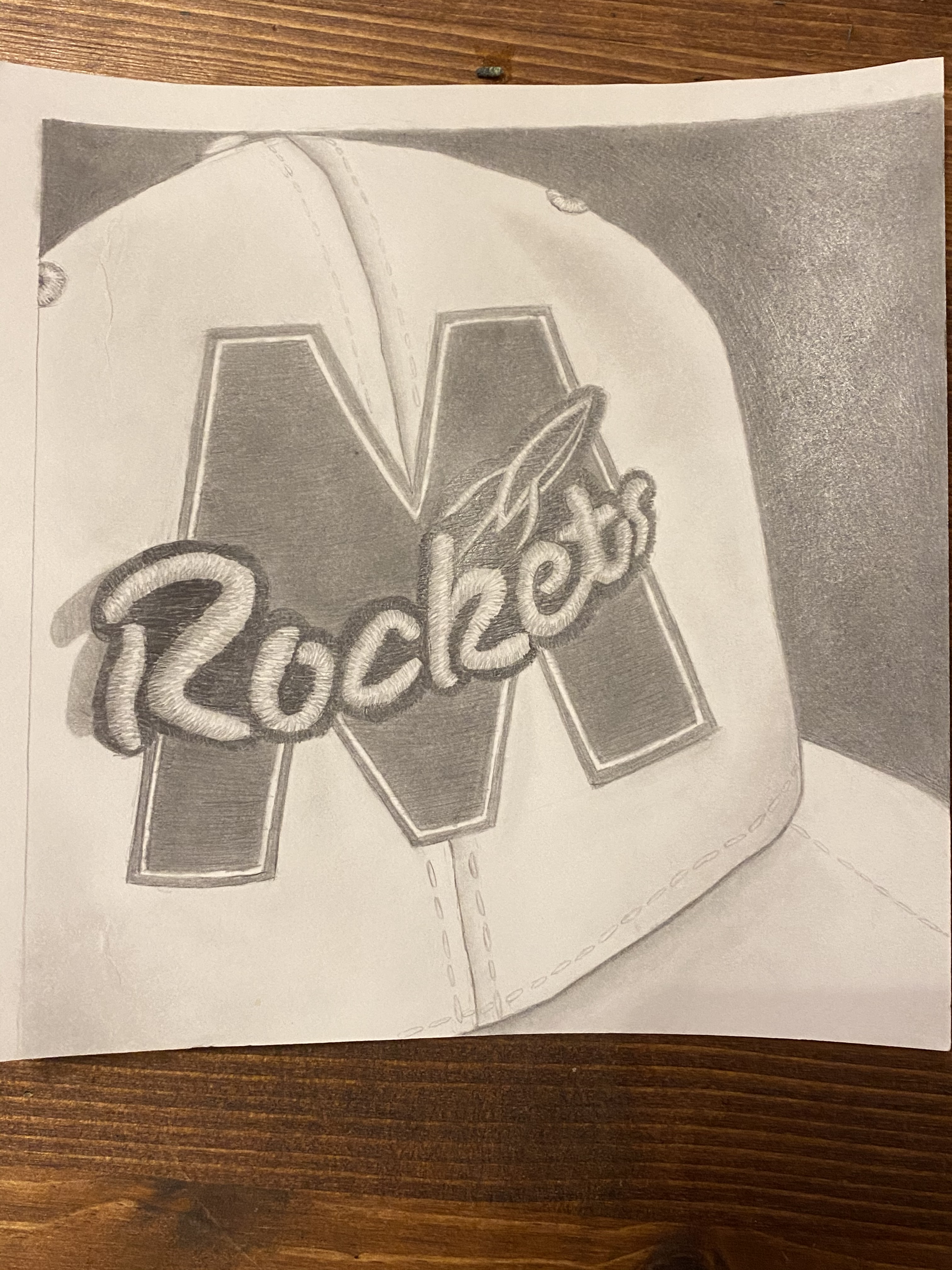 In addition to being an art student, junior Kyla Crowe is also a student athlete. “I wanted to do something more realistic, and this piece has some special meaning because it is a [drawing] of my McNick softball hat. I have played softball for a really long time, and I thought that making an art piece that related to that somehow would be a really cool way to show some of who I am,” Crowe said.