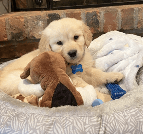 “Toby is a 3-month old Golden Retriever. He loves eating bananas, laying outside, and eating rocks,” Smyth stated.