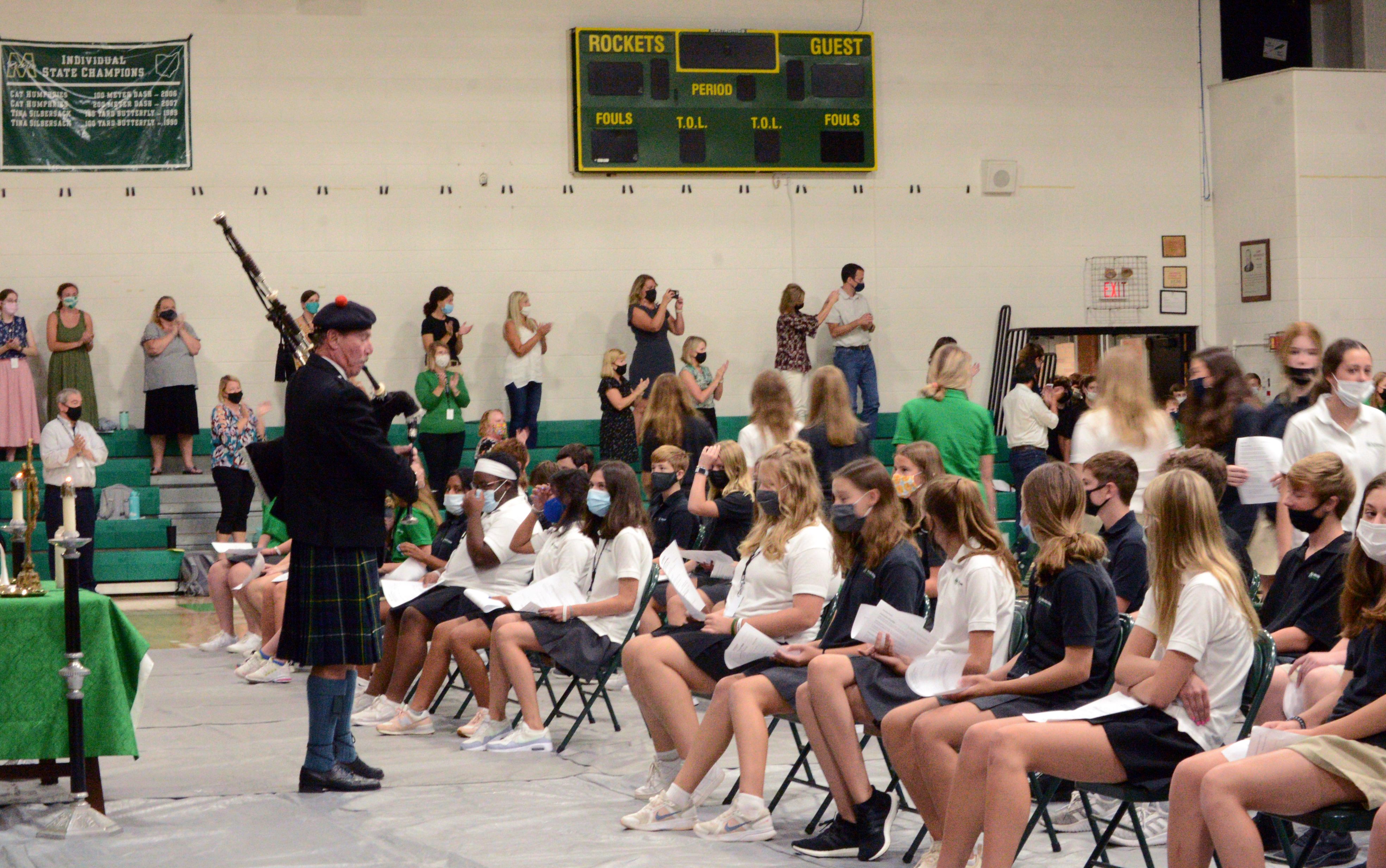 When the Mass began, freshmen were led into school by retired history teacher Mr. Frank Lowden on the bagpipes. This has been a tradition at McNicholas High School since 2002.