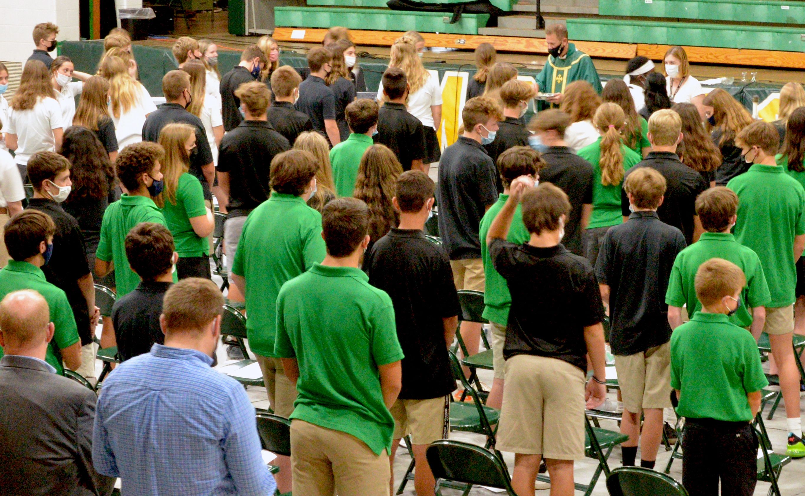 The entire school gathered in the main gym for the second Mass of the school year on September 20, and will again join as a community to celebrate Mass on Oct. 4.