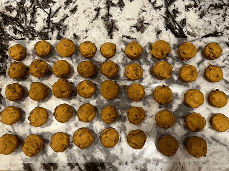 Thanksgiving is celebrated by sitting around a table with family and friends and enjoying time together with the ones you love. Another way to celebrate is by making delicious chocolate chip pumpkin muffins!