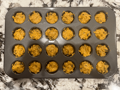 Step 4: Pour batter into a greased or lined muffin tin. They should be ¾’s of the way full.