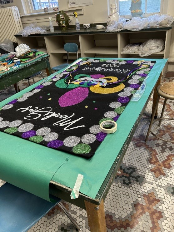 Anyone can participate in the competition. The design must include the words “fleur de lis” and “Mardi Gras 2023” and the color scheme of white, gold, silver, and purple using felt, paint, or embroidery.