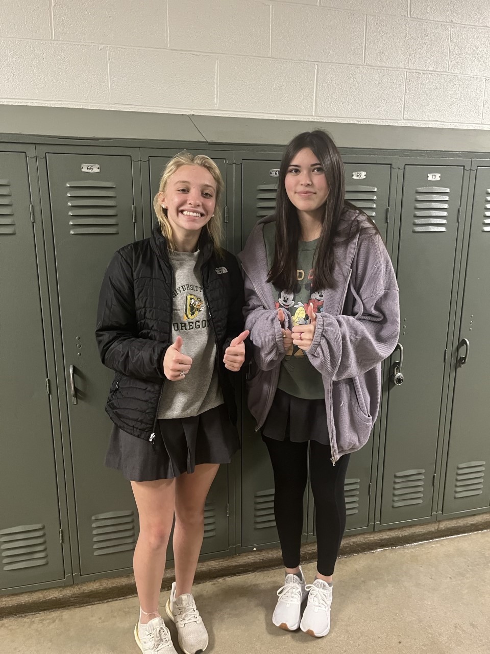 Juniors Amanda Zerhusen and Lauren Brown both had their green and purple going for Mardi Gras spirit day. Zerhusen had a little green for faith and Brown had purple for justice.