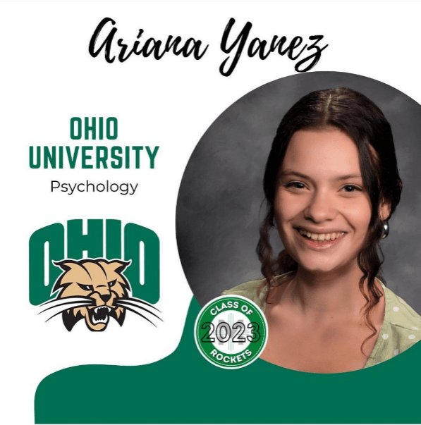 Yanez will be majoring in Psychology at Ohio University in the Fall. Yanez said, “Hopefully if I get to tutor or be a counselor for some kids over the summer, that might help me.” She will be majoring in Psychology at Ohio University in the Fall.