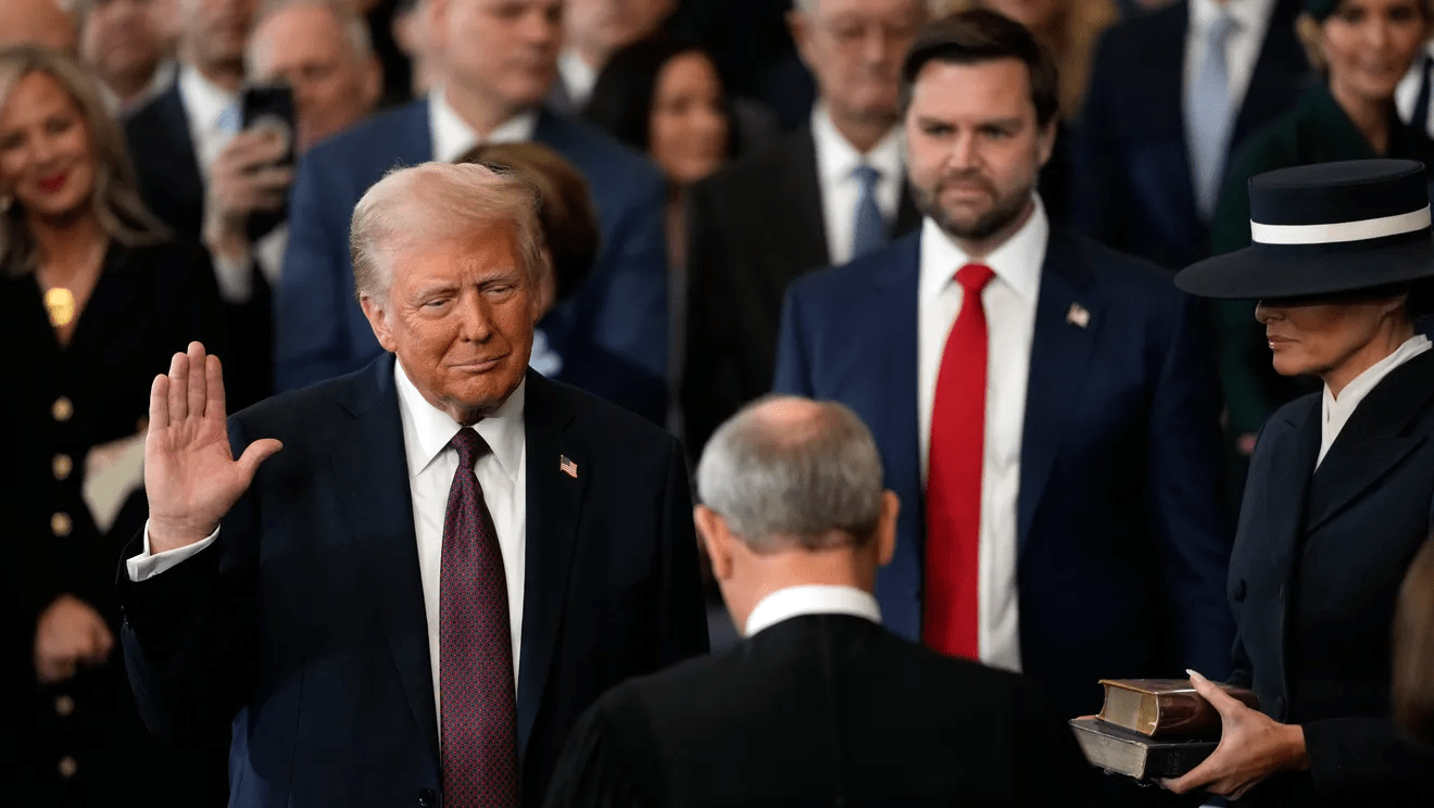 Due to the weather conditions this year, Donald Trump’s second inauguration was held in the Capitol rotunda. This change limited the number of people who were able to spectate, and many streamed the event from their homes. (Photo Courtesy of USA Today.)