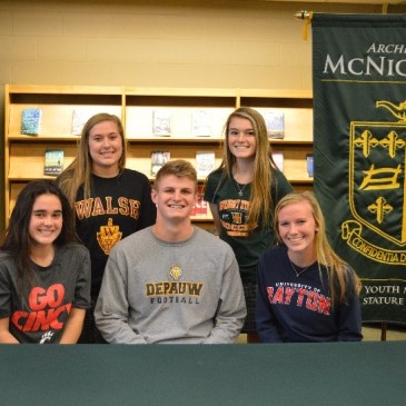 By Nicholas Wynn and David Waterman On Feb. 1, senior athletes Amy Farr, Sophie Gorman, Caitlyn Grooms, Cameron Haynes, and Megan Rack signed National Letters of Intent to play their respective sports at the college level starting with the 2017-2018 school year. Deciding to continue their soccer careers, Farr signed to Walsh University, Gorman signed … More Rocket seniors commit to college athletics